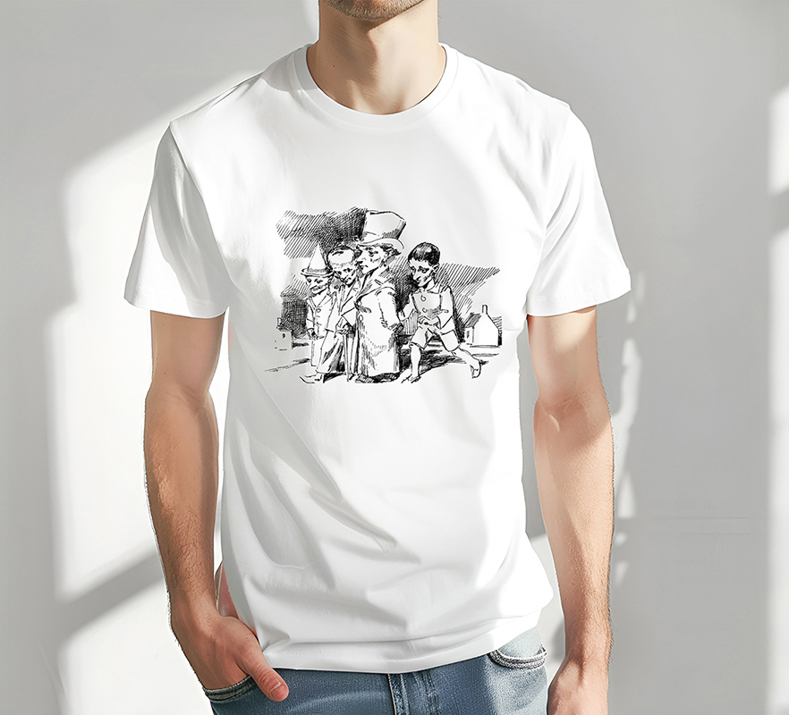 Artystyczna koszulka z nadrukiem techniką sitodruku. Jest to najtrwalsza technika nadruku.