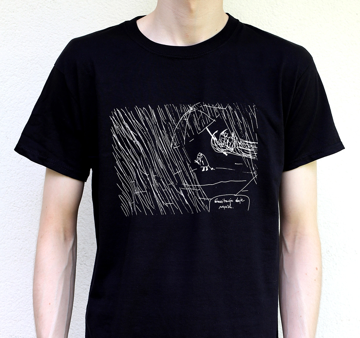 Artystyczna koszulka z nadrukiem techniką sitodruku. Jest to najtrwalsza technika nadruku.